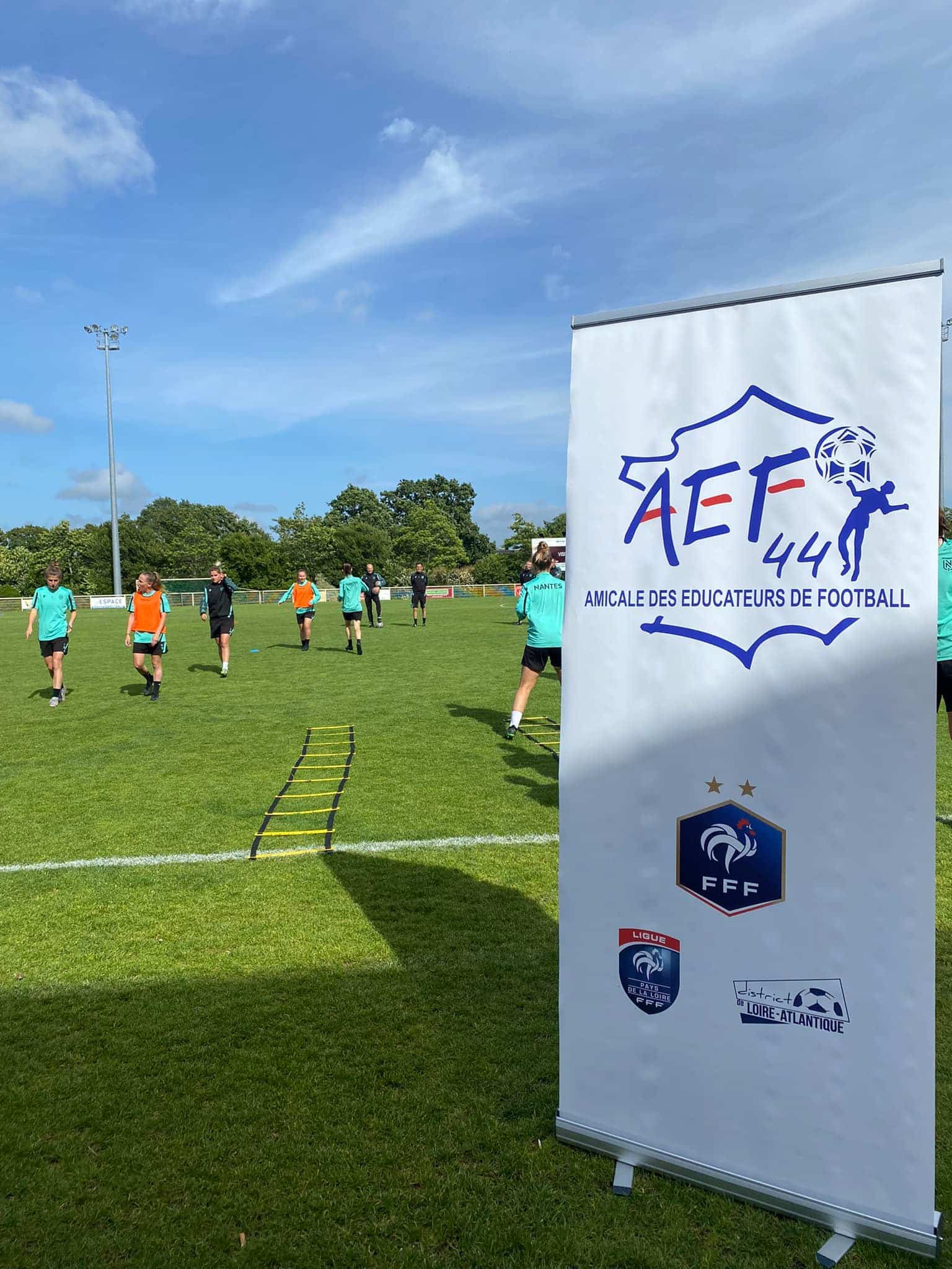 Dans le but de promouvoir le football féminin dans notre département et organisé par nos responsables du Pôle féminin de l’AEF 44, Nicolas Stéphan et Xavier Ganache, nous avons eu le grand plaisir, le mercredi 08 juin 2022, d’assister au Stade de l’île de la Pierre à Saint André des Eaux à une séance d’entrainement exceptionnellement délocalisés des féminines du FC Nantes évoluant en D2F.